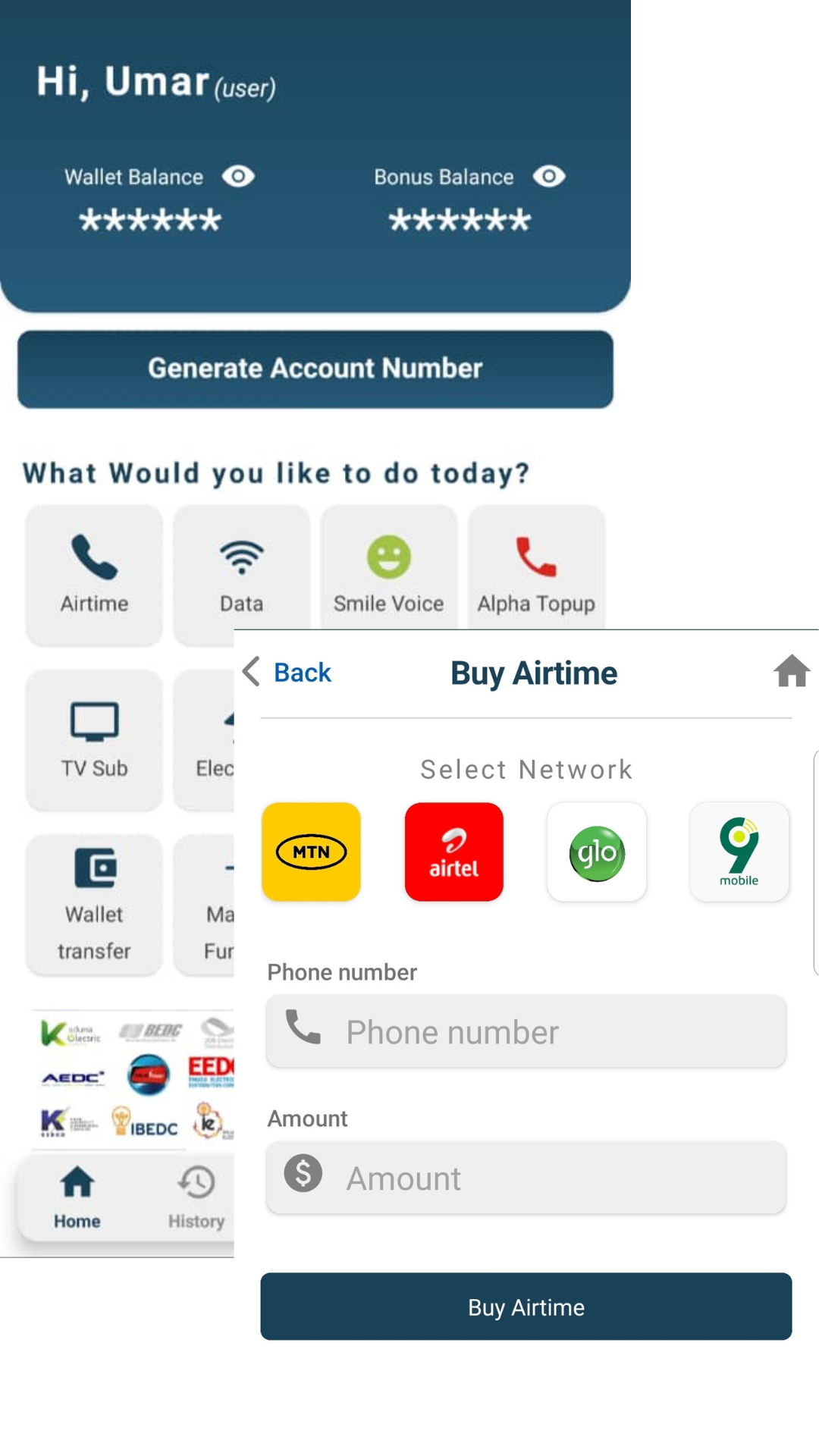 Purchase Data Bundles, Airtime, Pay Electricity Bills, TV Subscription, Alpha Caller, Smile Voice and more at low cost.